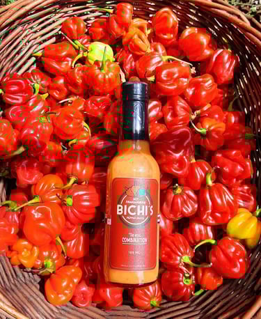 En Bichi's Pepper Sauce, somos productores de chile panameño orgánico, ofreciendo una salsa inigualable que resalta el sabor auténtico de nuestra tierra. ¡Disfruta de la magia en cada gota!